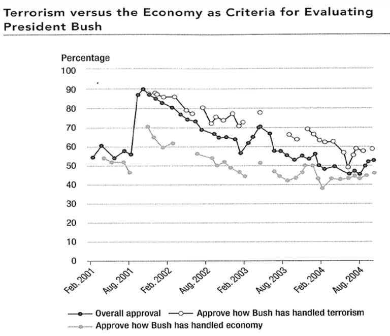 Priming is an extension of the agenda-setting. It is ‘a process by which news coverage influences the weights that individuals assign to their opinions on particular issues when they make political evaluations, such as which candidate deserves their vote’ (Lee, 2024). In other words, issues that are extensively covered are primed in people’s minds as more important, hence impacting how we assess political figures and their performance. An example of this is the US president George W. Bush and his ‘war on terror’. Although his approval ratings were decreasing soon after he was elected, they skyrocketed when his cabinet declared a ‘war on terror’ after 9/11 and proclaimed it a victory soon after that. In 2001, the increased coverage of terrorism (priming of terrorism by news outlets) became a standard by which people began evaluating the national leader, even if they were less satisfied with his handling of other matters. Bush’s increased popularity ranking was affected by people’s increased focus on terrorism, which was primed by the media.
